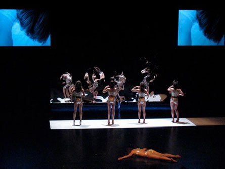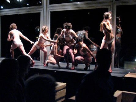 Plastic women, skin exposed. Confrontation and resolution. Individuals merged and re-divided. The piece pushes borders - between inside and outside, public and private.